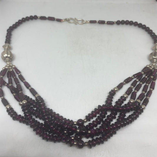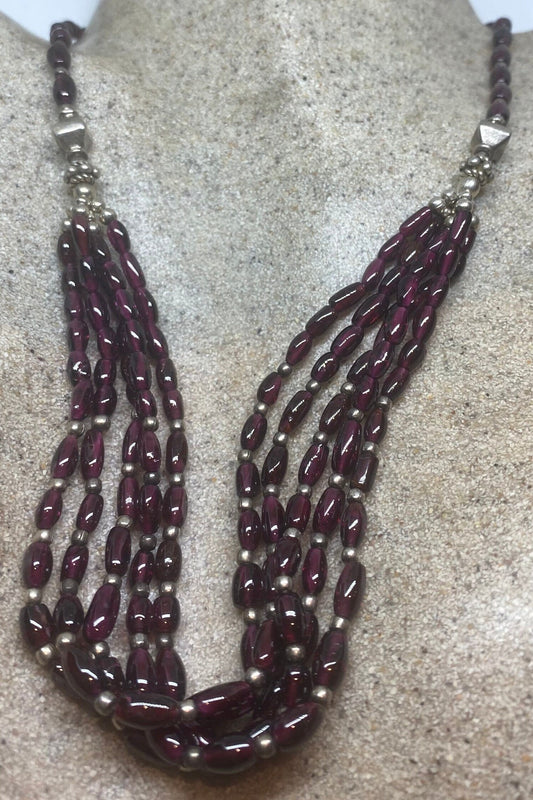 Vintage Moroccan Red Garnet Necklace with 925 Sterling Silver