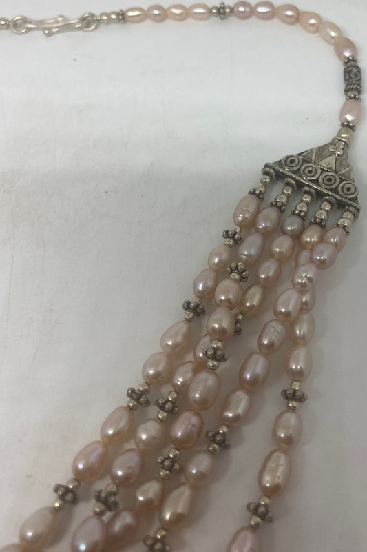Vintage Moroccan Pink Pearl Necklace Genuine White Pearl with 925 Sterling Silver