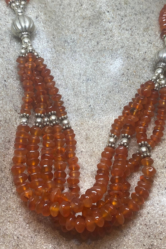 Vintage Moroccan Red Carnelian Crystal Necklace with 925 Sterling Silver