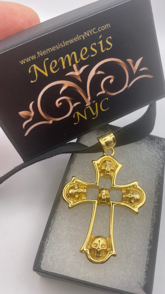 vintage Celtic Skull Gold Stainless Steel Cross pendant necklace
