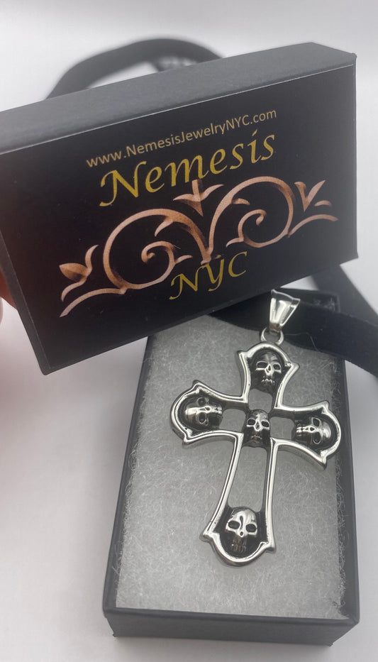 vintage Celtic Skull Silver Stainless Steel Cross pendant necklace