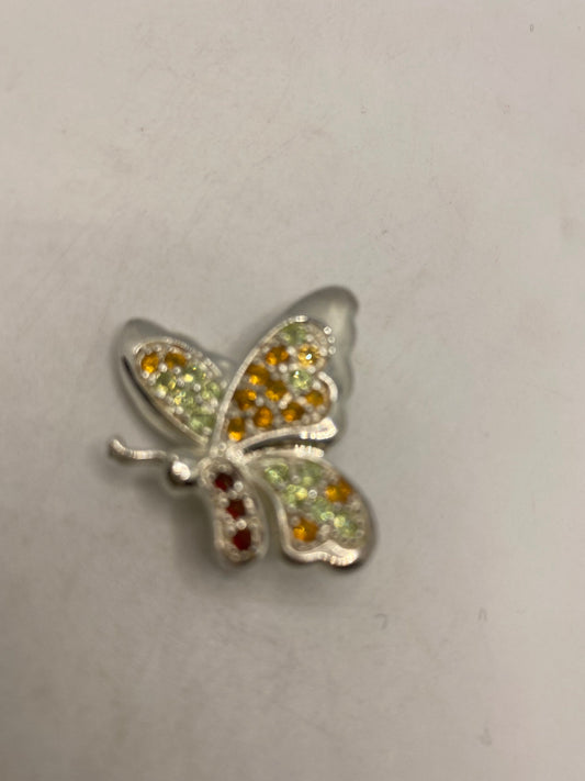 Vintage Citrine Peridot and red tourmaline pin 925 Sterling Silver Butterfly Brooch