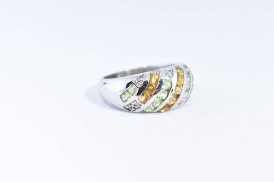 Vintage Golden Citrine Peridot Ring Deco 925 Sterling Silver