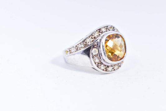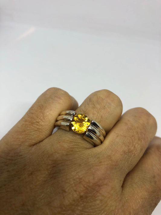 Vintage Golden Citrine Ring Deco 925 Sterling Silver