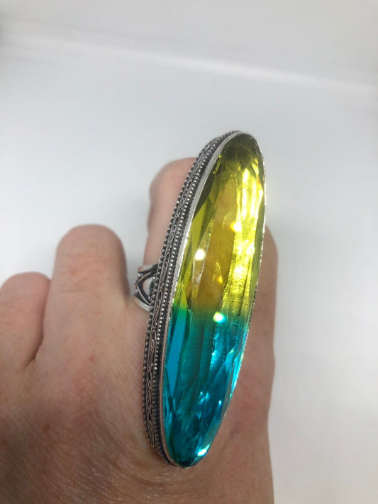 Vintage Green to yellow Vintage Art Glass Ring 2 Long Knuckle Ring