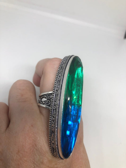 Vintage Green Blue Vintage Art Glass Boho Knuckle Ring