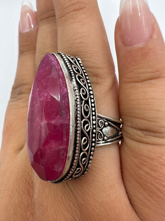 Vintage Raw Pink Ruby Silver Boho Chunky Ring