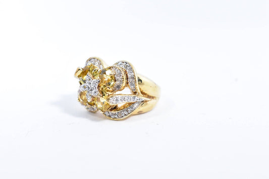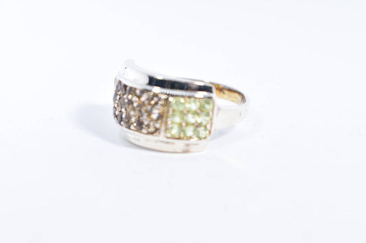 Vintage Golden Citrine and Peridot Ring Deco 925 Sterling Silver