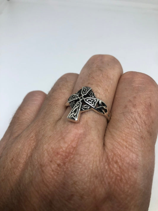 Vintage Gothic 925 Sterling Silver Celtic Cross Ring