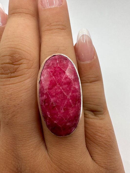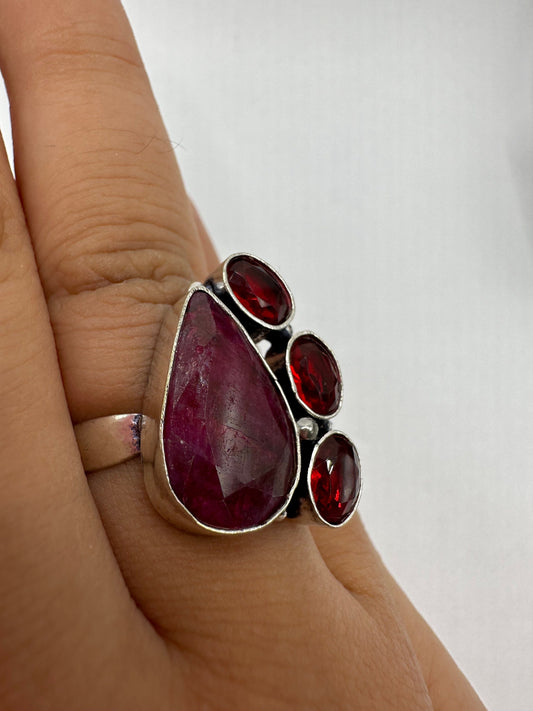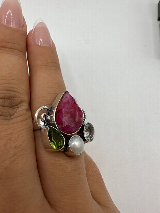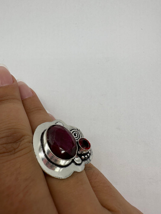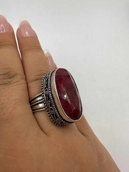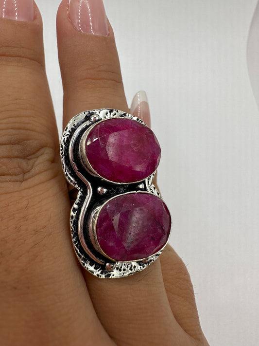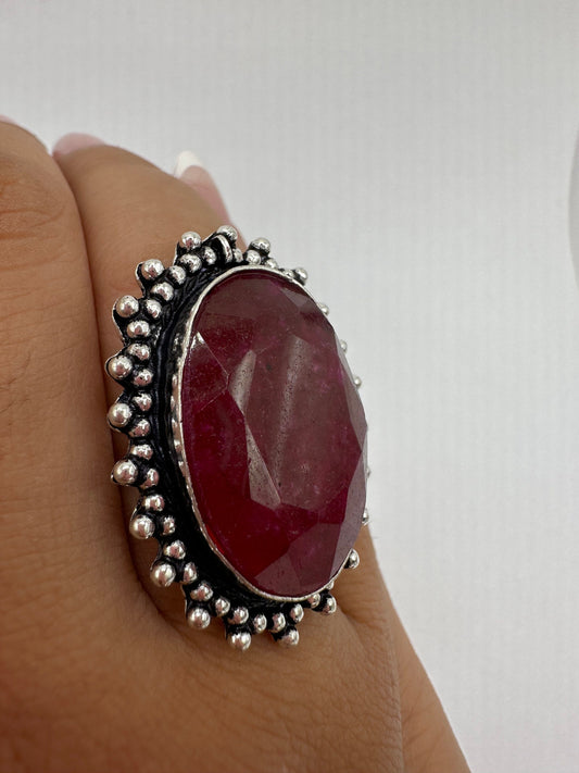 Vintage Handmade Raw Pink Ruby Silver Gothic Ring