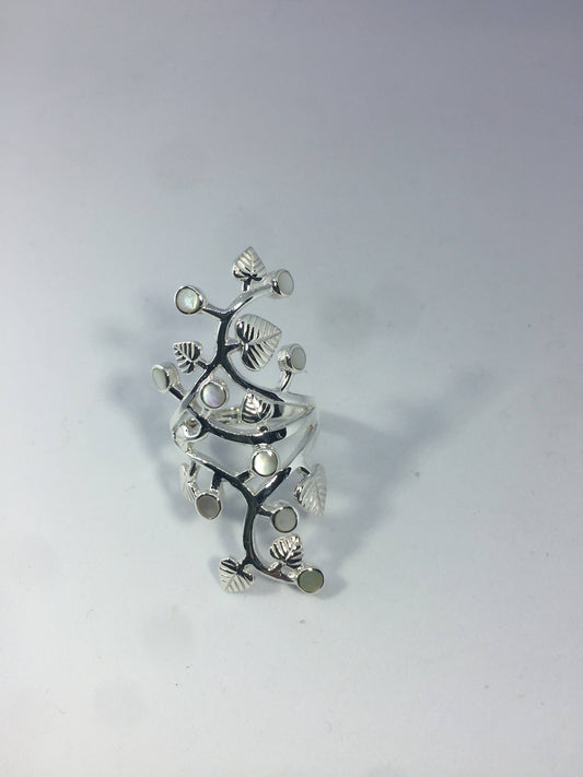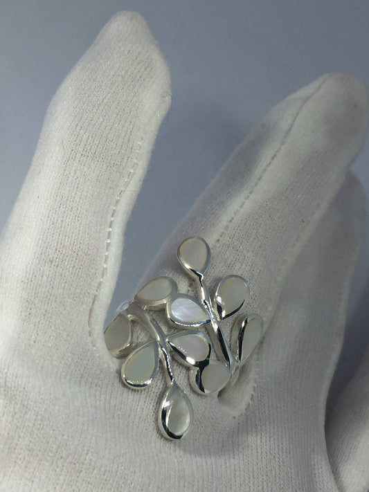 Antique White Mother of Pearl Filigree Sterling Silver Ring