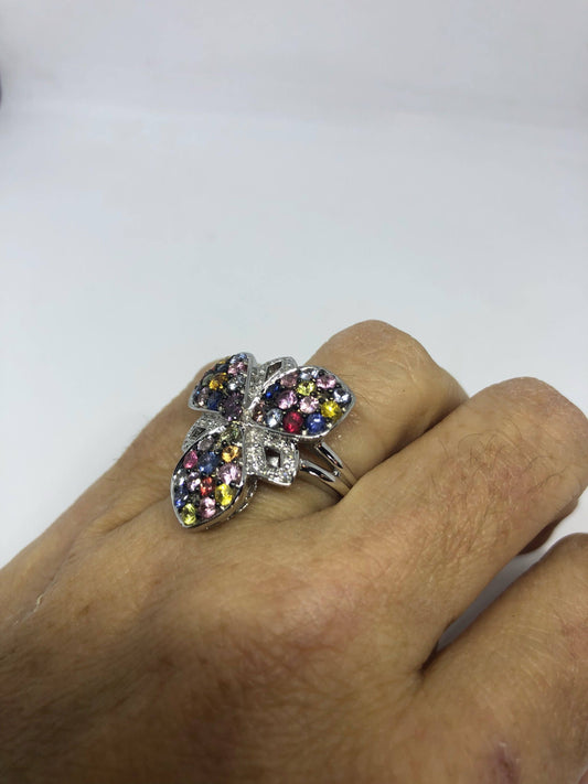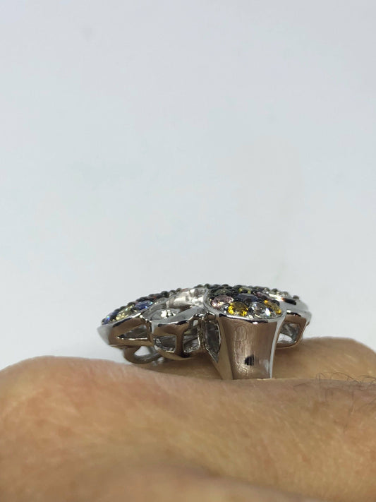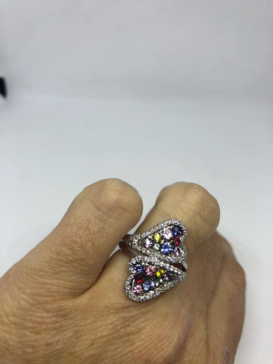 Vintage Mixed Color Tourmaline 925 Sterling Silver Gothic Heart Valentines Ring