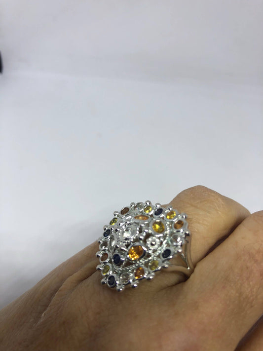 Vintage Handmade Golden Genuine Citrine 925 Sterling Silver Gothic Ring