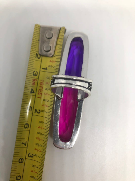 Vintage Pink Purple Vintage Art Glass Ring About 3 Inches Knuckle Ring