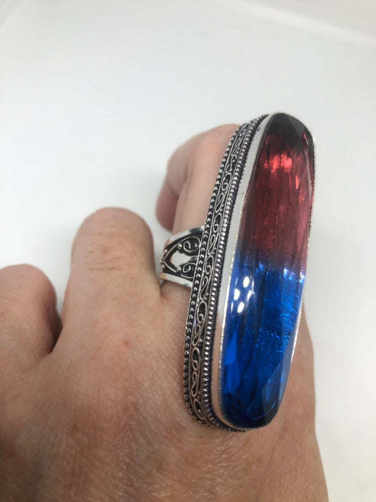 Vintage Red Blue Vintage Art Glass Ring About 3 Inches Knuckle Ring