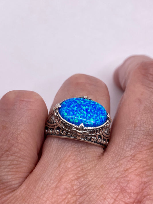 Vintage Fire Opal Ring 925 Sterling Silver Cocktail Band