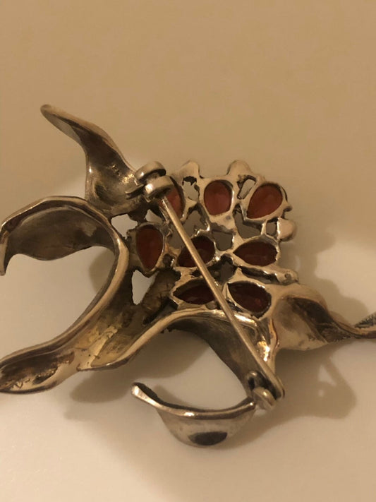 Vintage Handmade Genuine Garnet Marcasite 925 Sterling Silver Brooch