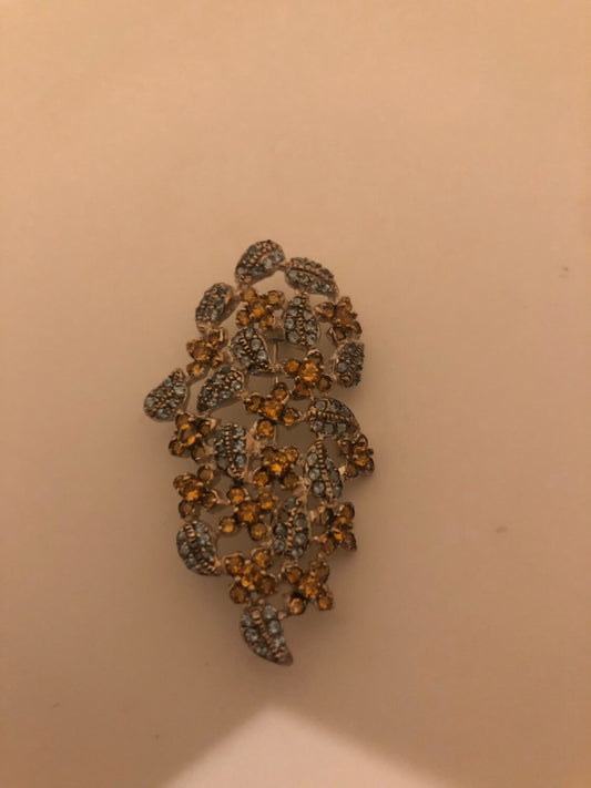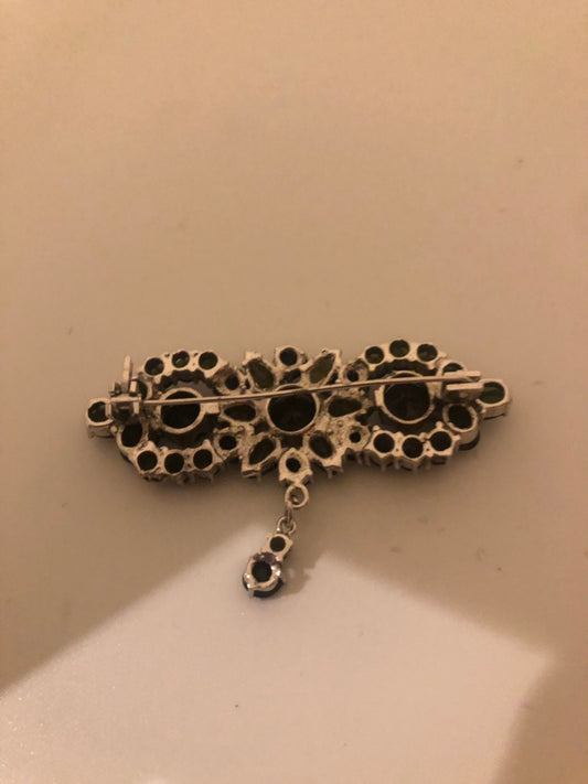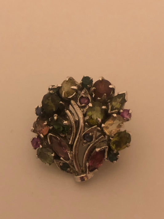 Vintage Genuine Mixed Gemstone 925 Sterling Silver Rhodium Brooch