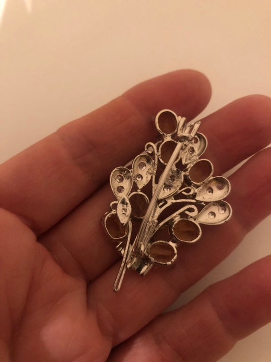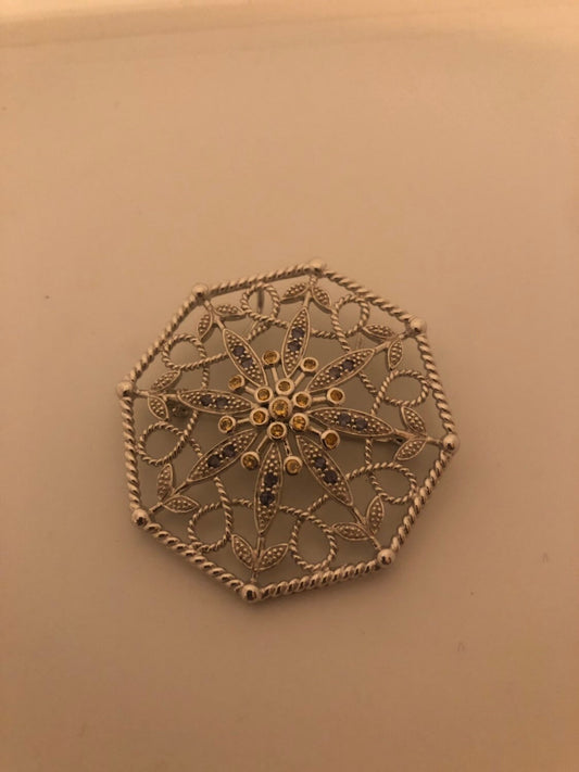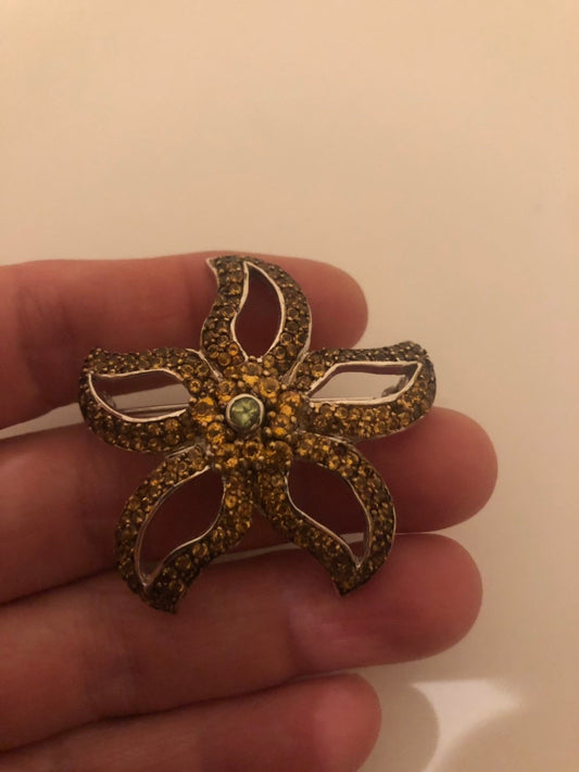 Vintage Handmade Genuine Citrine 925 Sterling Silver Rhodium Brooch