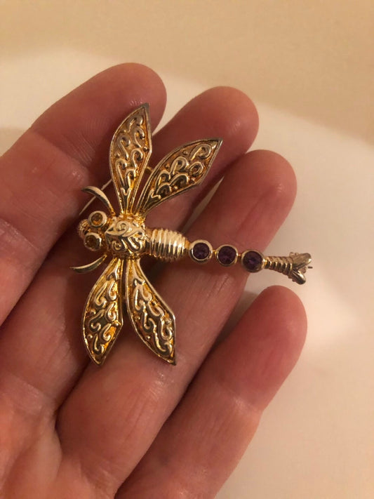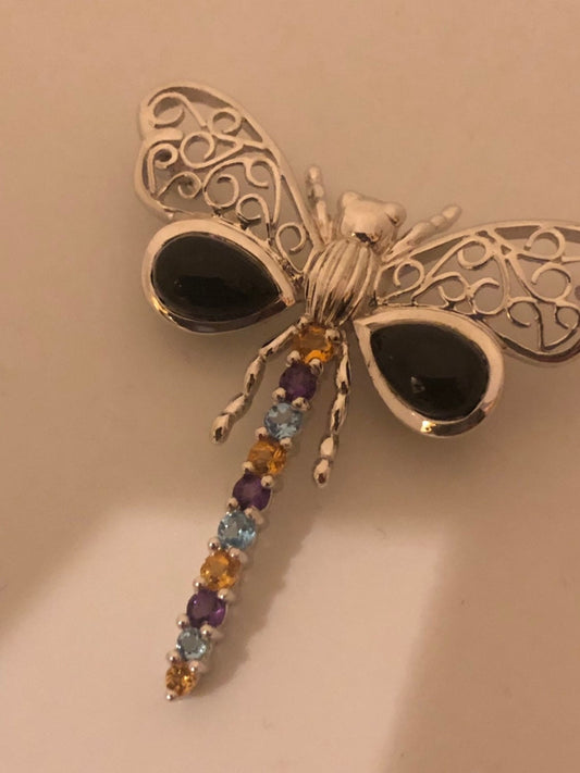 Vintage Handmade Citrine and Iolite Sterling Silver Butterfly Brooch Choker