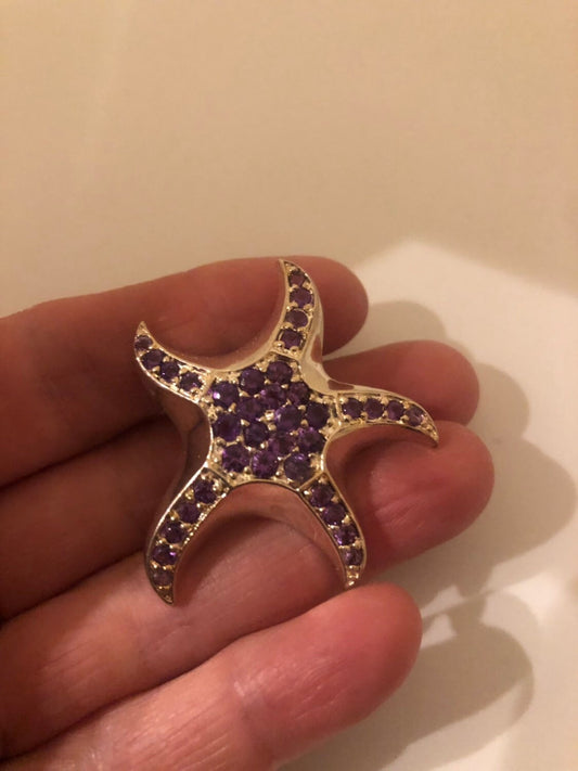 Vintage Handmade Purple Amethyst Sterling Silver starFish Brooch