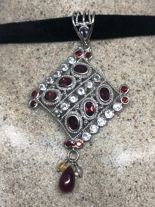 Vintage Bohemian Garnet Choker 925 Sterling Silver Pendant Necklace