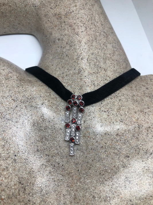 Vintage Bohemian Garnet Deco Choker 925 Sterling Silver Pendant Necklace