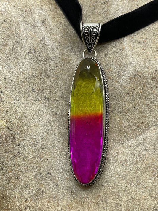 Vintage Boho Silver Pink Yellow Antique Glass Choker Necklace