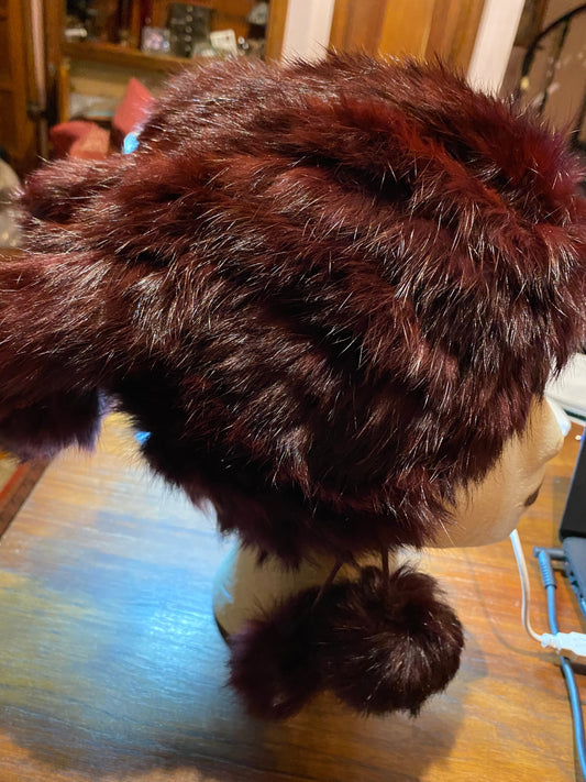 Vintage Burgundy Rabbit Fur Russian Deco Hat