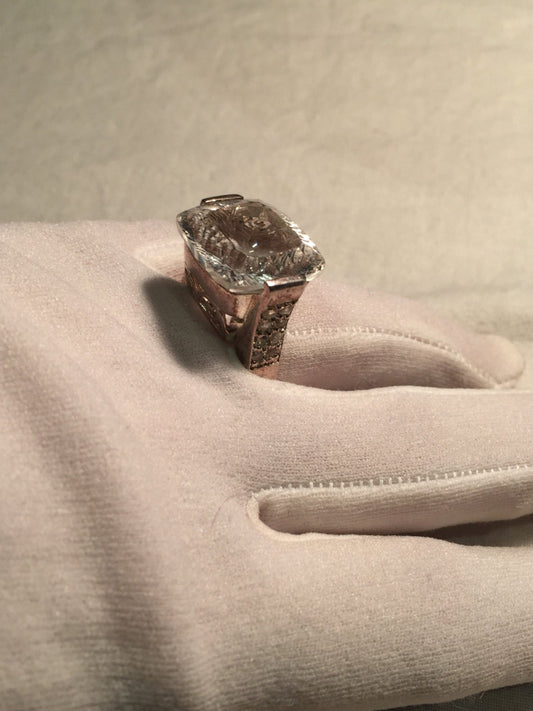 Vintage Clear White Sapphire 925 Sterling Silver Cocktail Ring