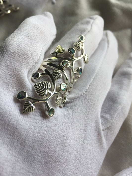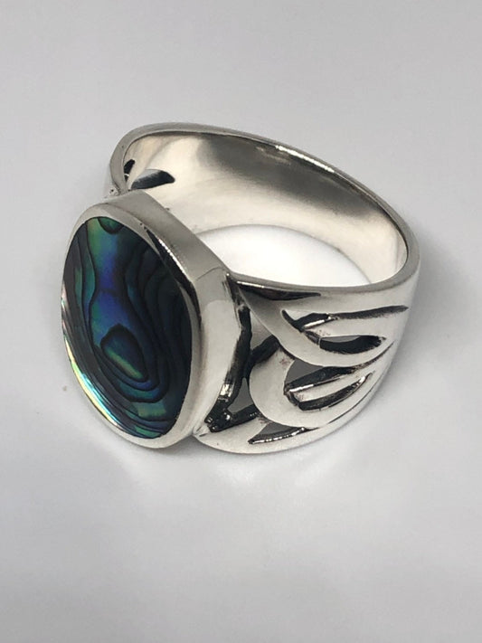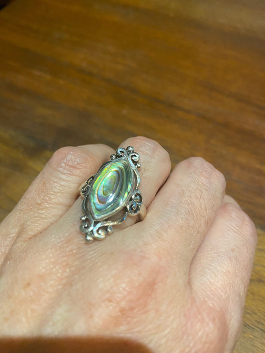 Antique Abalone Filigree 925 Sterling Silver Ring
