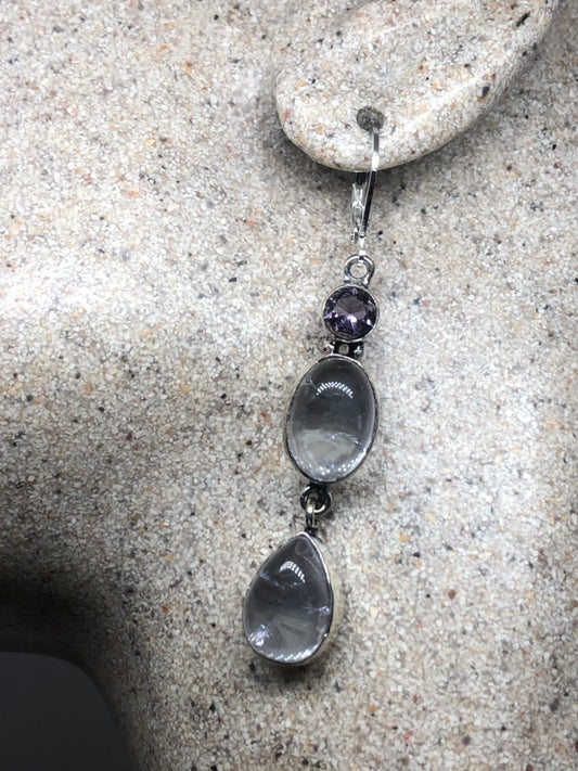 Antique Crystal Charm Gemstone Sterling Silver Dangle Earrings
