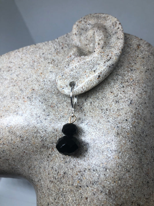 Antique Crystal Sterling Silver Lever Back Dangle Earrings
