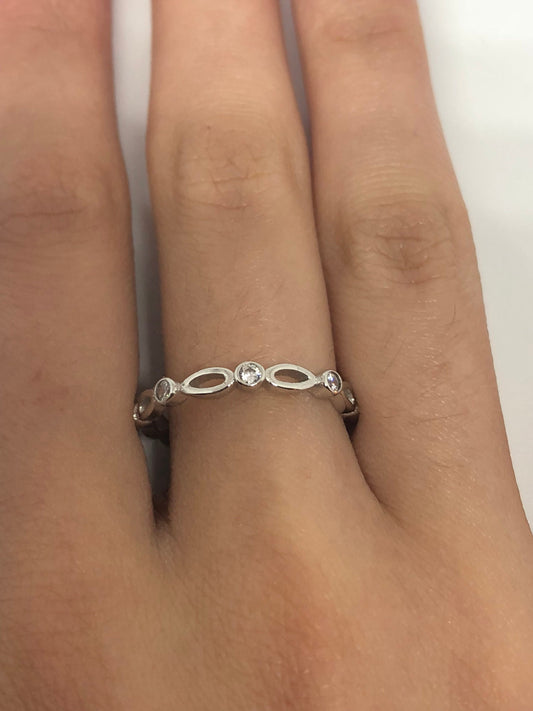 Brooklyn Line Micro Cubic Zirconia Crystal Sterling Silver Eternity Band Ring