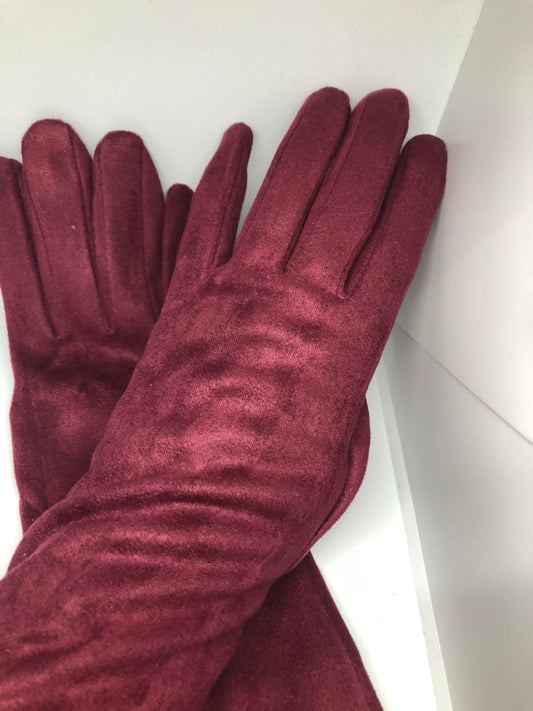Burgandy Red Evening Gloves Vintage Ultrasuede Fleece Long Opera Gloves