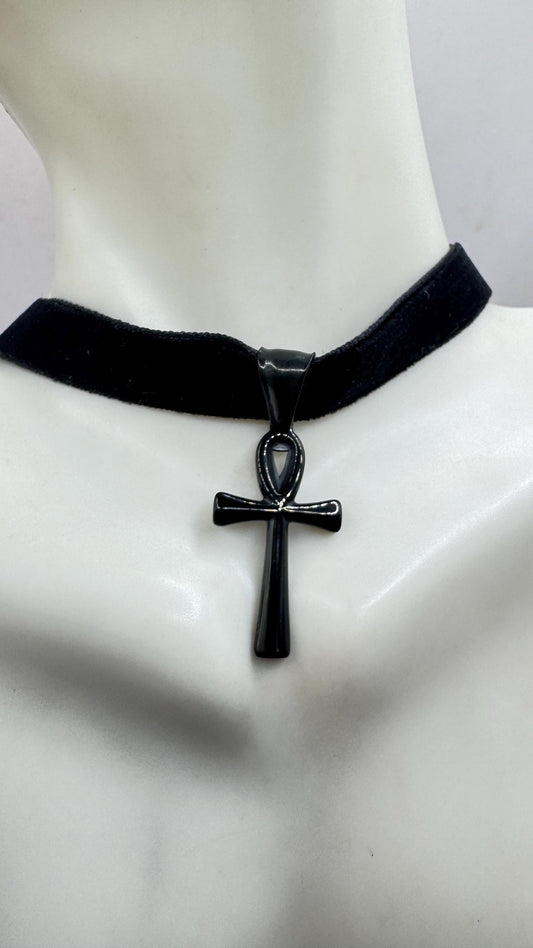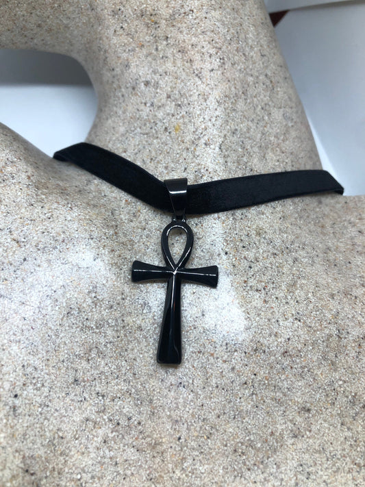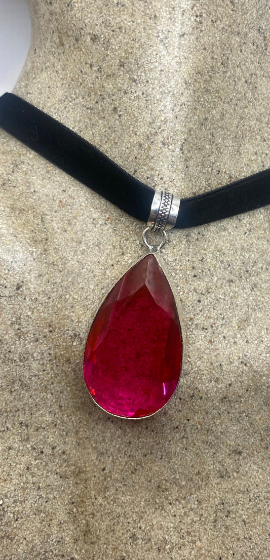 Fuchsia Pink Gothic Silver Finished Genuine Antique Volcanic Glass Choker Necklace