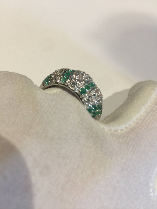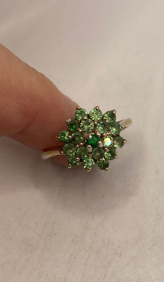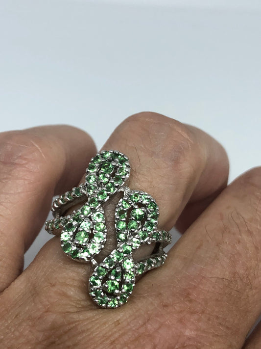 Vintage Handmade Genuine Green Tsavorite Setting 925 Sterling Silver Gothic Band Ring