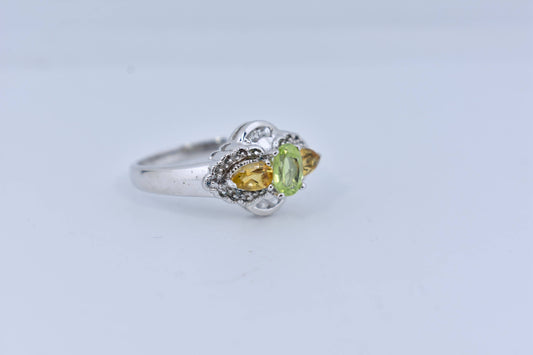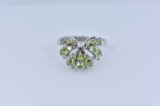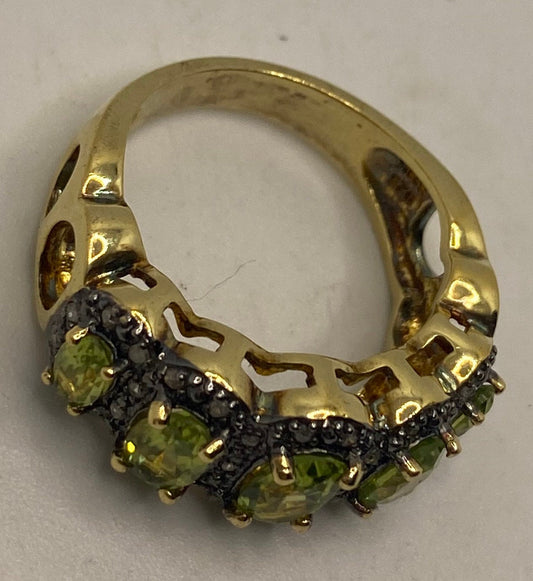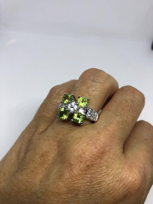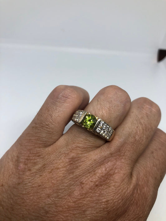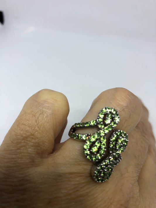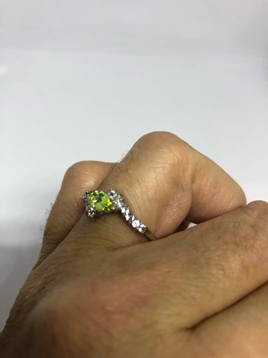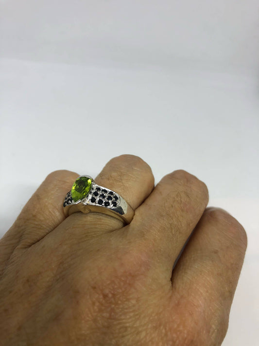 Vintage Handmade Genuine Green Peridot Filigree Setting 925 Sterling Silver Gothic Ring