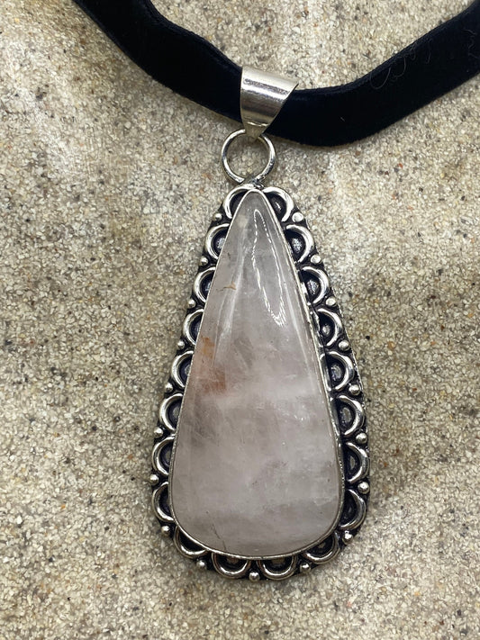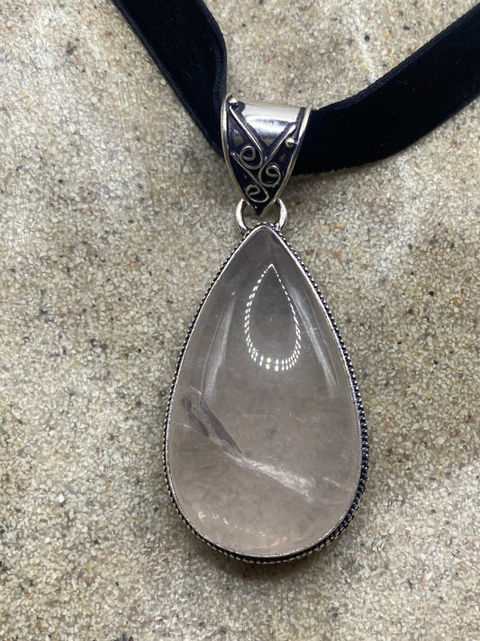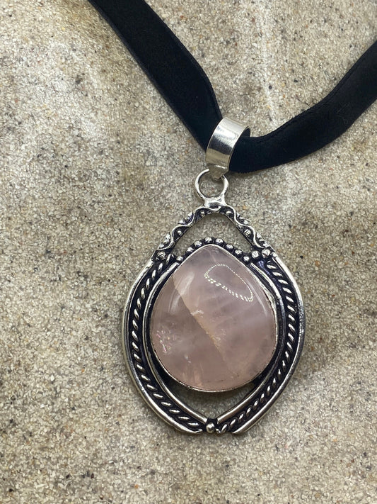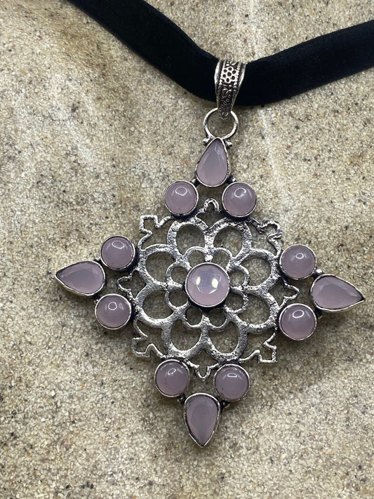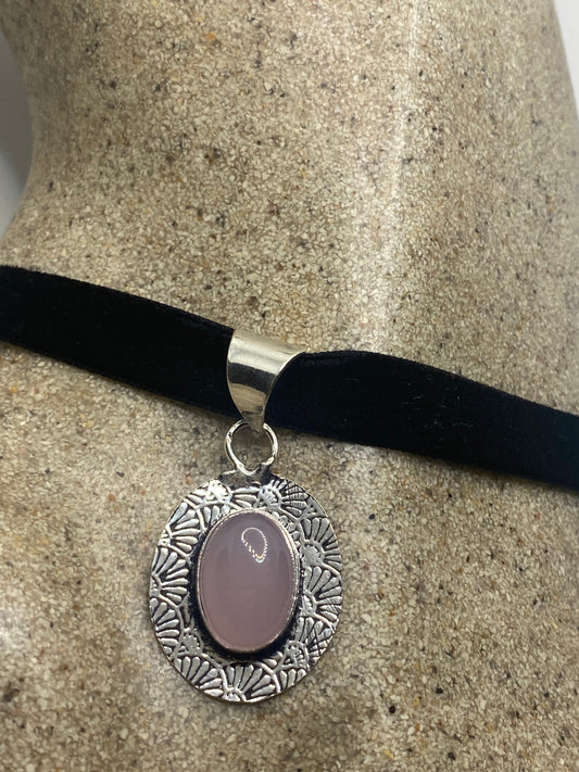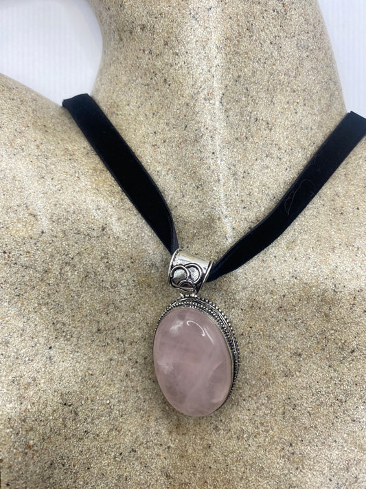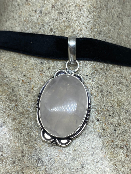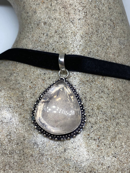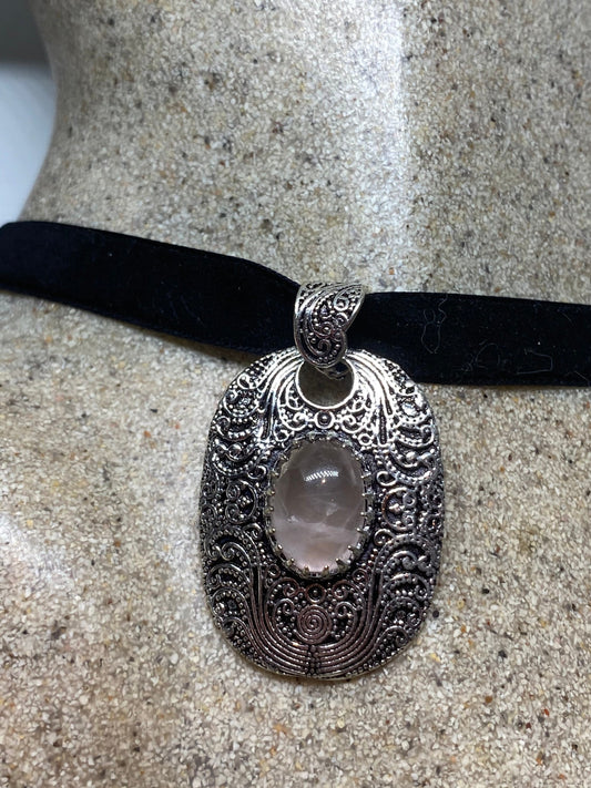 Vintage Handmade Silver Finish Rose Quartz Choker Pendant