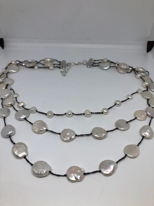 Hand Wrapped Pearl 3 strand grey Pearl Necklace