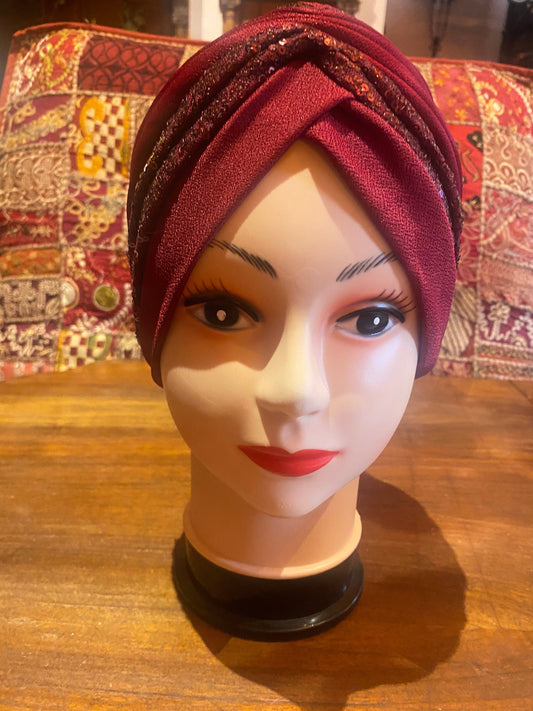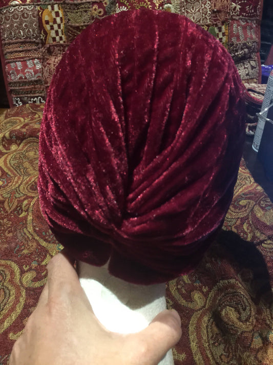 Vintage Wine Red Stretch Velvet Deco Turbin Hat