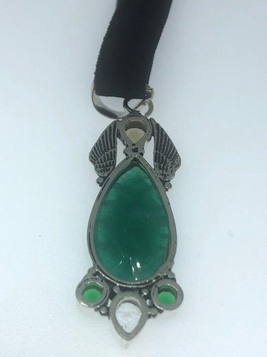 Vintage Winged Green Chysopraise Crystal Choker Pendant