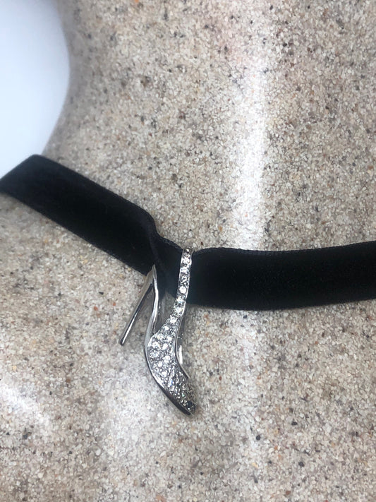 Vintage Wishbone 925 Sterling Silver White Sapphire Choker Necklace