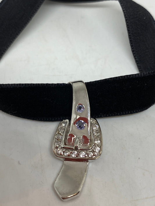Vintage Wishbone 925 Sterling Silver White Sapphire and tanzanite Choker Necklace