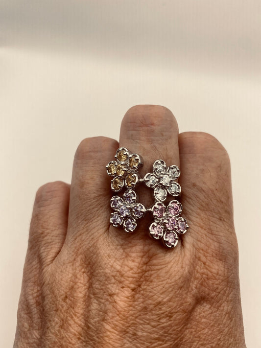 Vintage White yellow pink Sapphire 925 Sterling Silver Cocktail Wedding Band Ring