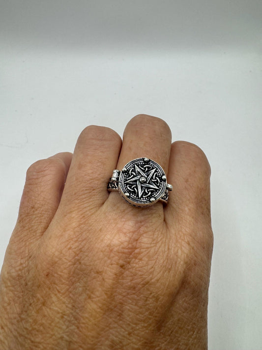 Vintage Wiccan Pentagram Star White Bronze Poison Pillbox Ring