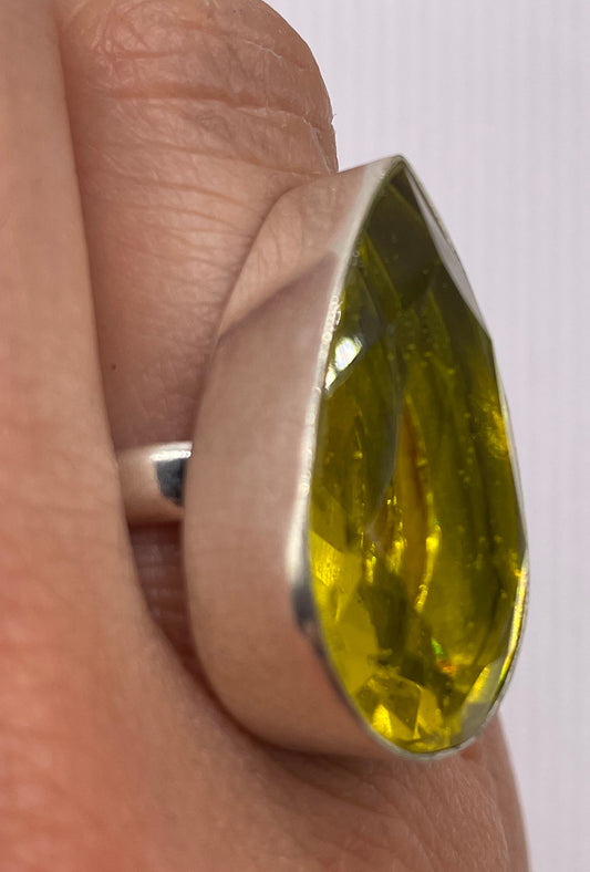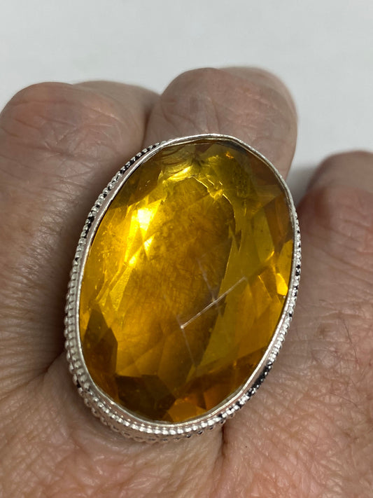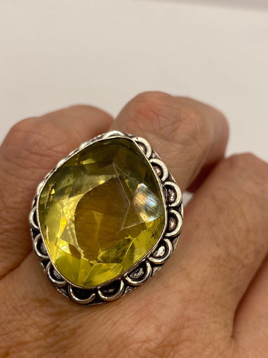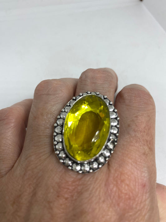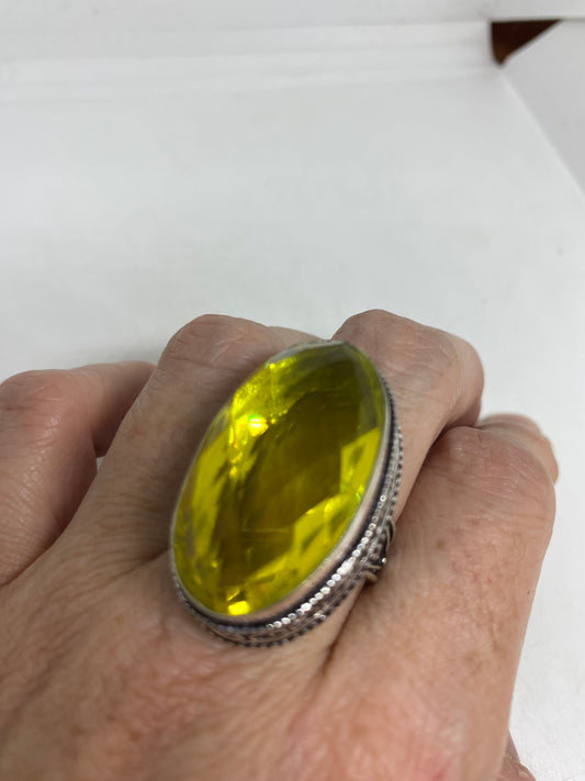 Vintage Yellow Vintage Art Glass Cocktail Ring Size 7.5
