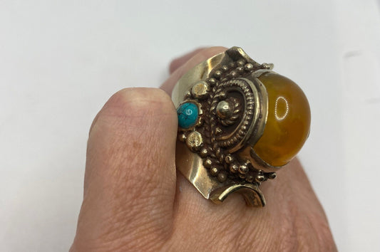 Vintage Yellow Turquoise Tribal Brass Antique Ring