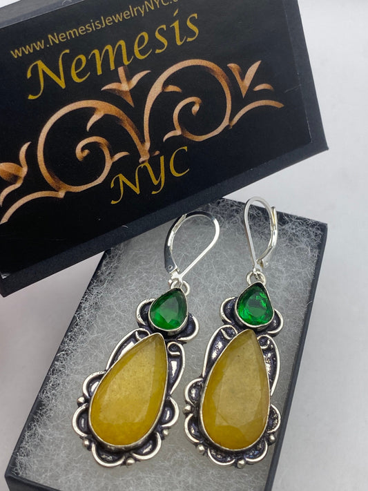 Vintage Yellow Moonstone Sterling Silver Lever Back Dangle Earrings