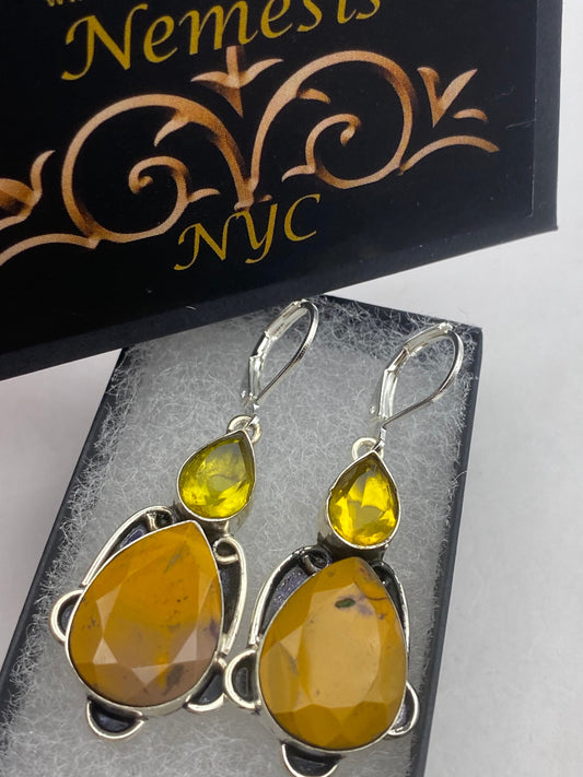 Vintage Yellow Jasper 925 Sterling Silver Leverback